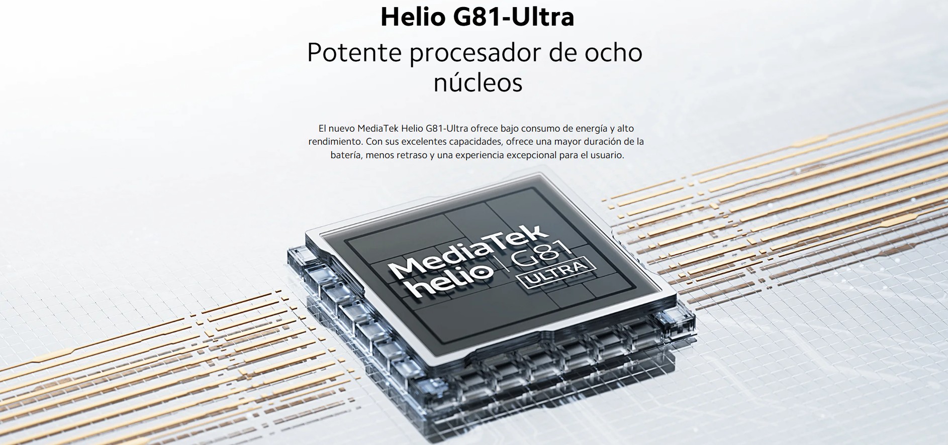 Su potente procesador Helio G81-Ultra y hasta 8GB de RAM con extensión a 16GB garantizan rendimiento y rapidez en todas tus tareas.